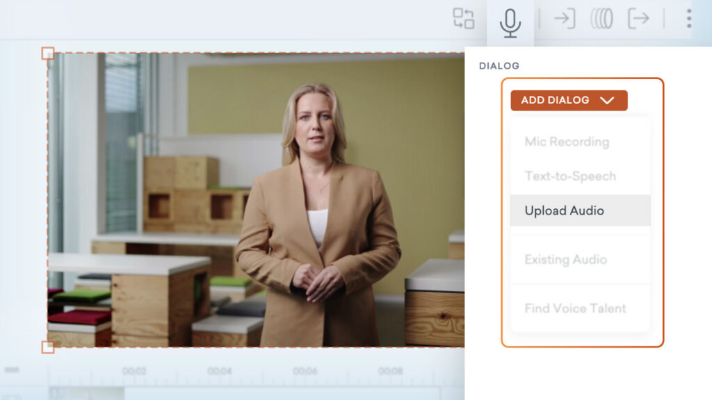 With this latest update, you can upload your own audio or mic recordings for stock avatar dialog in Vyond Studio, giving you complete control over their voice and expressions.