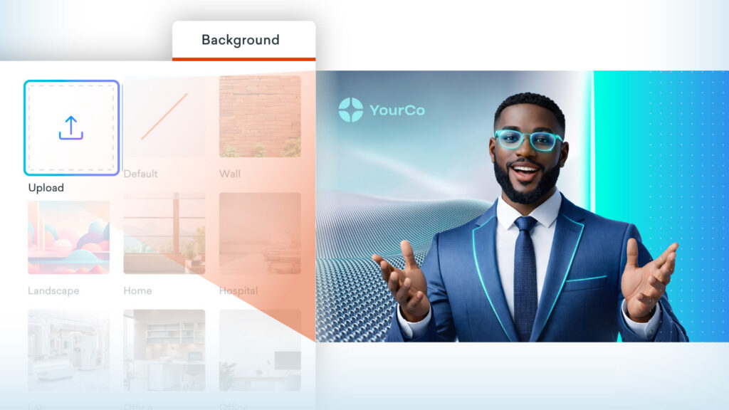 For avatars created from a text prompt, you can change the background image while keeping the same avatar. This opens up more opportunities to customize your videos with branded images, colors and locations.